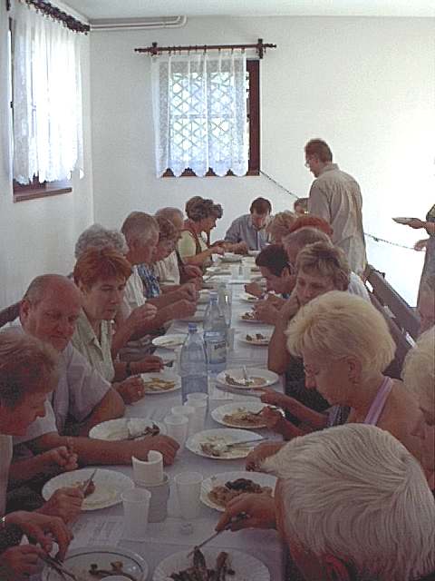 Dziękuję Januszku i Krysiu za wspaniałe przyjęcie w Krzczonowie. Spotkanie było bardzo miłe i niezwykle treściwe; zwłaszcza relacja i rady Stanisława Czyszczonia, który pokonał SM i cukrzycę (podziwiam Jego ogromną "optymalną" wiedzę opartą na literaturze i DOŚWIADCZENIACH) a także wykład pani doktor. Wasz sposób żywienia gości OPTY powinien służyć za wzór innym. Mam na myśli typowe OPTY posiłki bez zastawiania stołów "korytowymi frykasami". Jeszcze raz okazuje się, że można ( i powinno) siedzieć przy pustym stole (nie licząc napoi) i prowadzić rozmowy. Drażni mnie na wielu spotkaniach z Optymalnymi ten stary korytkowy zwyczaj, gdyż widzę, że niektórzy nawet wieloletni Opty mają trudności w pokonywaniu własnych słabości. Wasi Krakowscy Opty są wspaniali. Bardzo się cieszę, że mogłam u Was gościć i bliżej poznać. Jeszcze raz serdecznie pozdrawiam Was wszystkich (oczywiście syna również) i przepraszam, że wysyłam post z grupy ale....... Ponieważ wiele osób ma pytania dot. SM i cukrzycy, to może rozmowa z Panem Stanisławem dostarczy potrzebnych wiadomości. Przypomnę kontakt tel.: 0...12 6454501 sisi W dniu 24 sierpnia (sobota) 2003r. w Krzczonowie w "ARKADII u ŻURKÓW" odbyło się II plenerowe spotkanie krakowskich optymalnych. Gościliśmy 35 osób (o 10 więcej niż na poprzednim spotkaniu. W czasie spotkania można było wymienić doświadczenia i uwagi na temat Żywienia Optymalnego, zasięgnąć bezpłatnych konsultacji u lekarza optymalnego. Niestrudzony pan Stanisław Czyszczoń udzielał porad na temat prawidłowego stosowania ŻO.  Część uczestników przed Arkadią. Optymalni i kandydaci na optymalnych przy stole obrad.